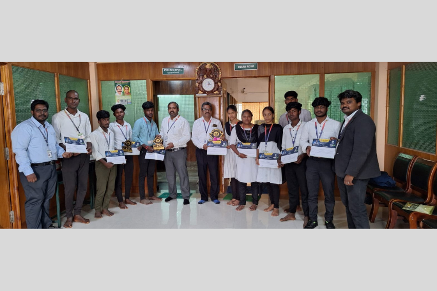 மீனாட்சி இராமசாமி பொறியியல் கல்லூரி இயந்திரவியல் மற்றும் வேளாண்மை துறை மாணவர்கள் திருச்சியில் நடைபெற்ற தேசிய அளவிலான கருத்தரங்கில் வெற்றி பெற்றதை முதல்வர் மற்றும் நிர்வாக இயக்குனர் பாராட்டி வாழ்த்தினர்