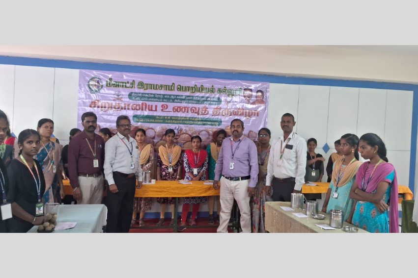 தத்தனூர் M. R. பொறியியல் கல்லூரியில் சிறுதானிய உணவுத் திருவிழா அரியலூர் மாவட்டம் உடையார்பாளையம் அடுத்துள்ள தத்தனூர் மீனாட்சி இராமசாமி பொறியியல் கல்லூரியில் சிறுதானிய உணவுத் திருவிழா கல்லூரி கலையரங்கத்தில் மிகச்சிறப்பாக நடைபெற்றது. இந்நிகழ்ச்சியில் மீனாட்சி இராமசாமி கல்வி நிறுவனங்களின் நிர்வாக இயக்குனர் முனைவர். க. செந்தில்குமரன், முதல்வர். முனைவர். ப. பழனிவேல், துறைத்தலைவர்கள், பேராசிரியர்கள், மற்றும் மாணவ மாணவியர்கள் திரளாக கலந்து கொண்டனர். அனைத்து துறைகளிலும் உள்ள 200க்கு மேற்பட்ட மாணவ, மாணவியர்கள் சிறுதானிய உணவான கம்பு, கேழ்வரகு, ராகி, சோளம், தினை, சாமை, வரகு, சாமை, குதிரைவாலி, பனிவரகு போன்றவற்றில், லட்டு, பாயாசம், ராகி, வடை, உப்புமா, கூழ், அடை, தோசை, இட்லி, அல்வா, முறுக்கு, பக்கோடா, அவியல், புட்டு, சுழியம், சிமிளி, சாமை, சத்துமாவு புட்டு, இதுபோன்ற 300க்கு மேற்பட்ட சிறுதானிய உணவு செய்து வந்து, அதற்கான முக்கியத்துவம் பற்றி விளக்கம் அளித்தார்கள். தேர்ந்தெடுக்கப்பட்ட சிறுதானிய உணவு செய்து வந்த மாணவ மாணவியர்களுக்கு பரிசுகளும் பாராட்டுகளும் வழங்கப்பட்டன. நிகழ்ச்சி ஏற்பாடுகளை பேராசிரியர் சீதா மற்றும் மாணவ, மாணவியர்கள் சிறப்பாக செய்து இருந்தார்கள்.